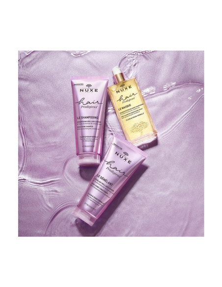Nuxe Hair Prodigieux Pre-Shampoo Nourishing Mask 125ml es una mascarilla oleosa y nutritiva para el cabello que ayuda a hidratar y reparar la fibra capilar, aportando brillo a la melena. Asimismo, está formulado con aceite fermentado de rosa camelia, aceite de ricino y de jojoba que contribuyen a nutrir el cabello. Apto para veganos. Con un 98% de ingredientes de origen natural. Contiene 125ml.