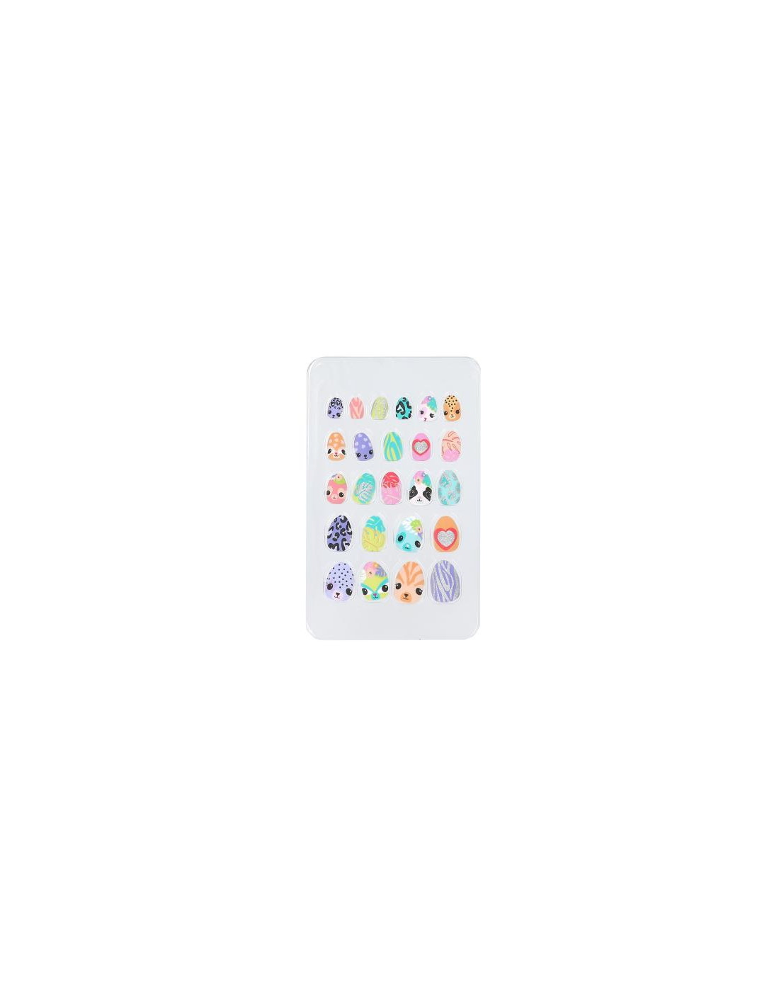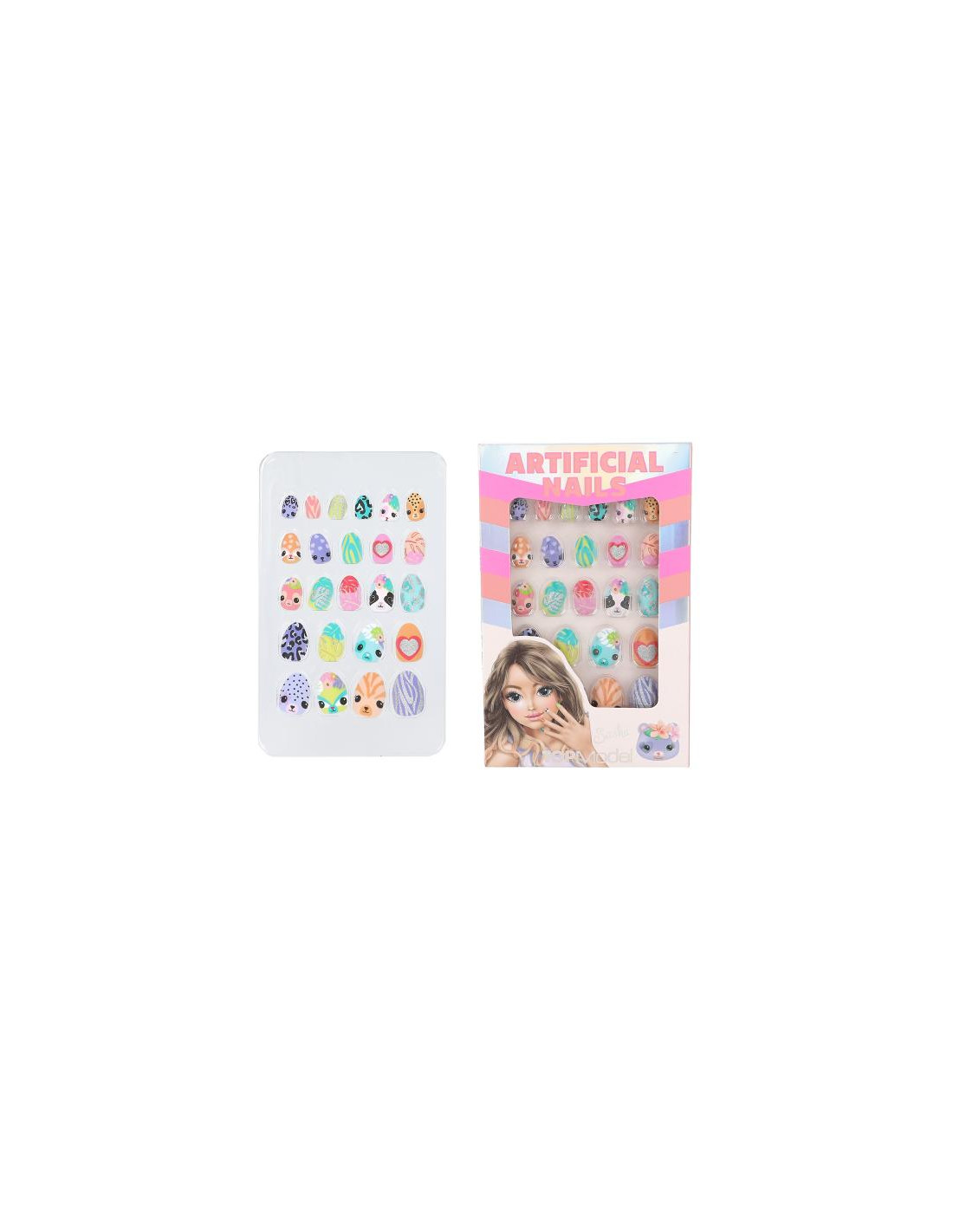 Las uñas postizas autoadhesivas, ligeramente cónicas, de TOPModel, con simpáticas ilustraciones de animales, así como simpáticos diseños y corazones (algunos con purpurina plateada), se pueden aplicar muy fácilmente en las uñas e igual de fáciles de quitar con agua.