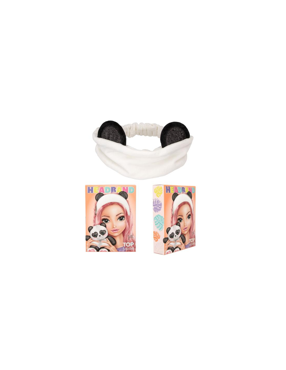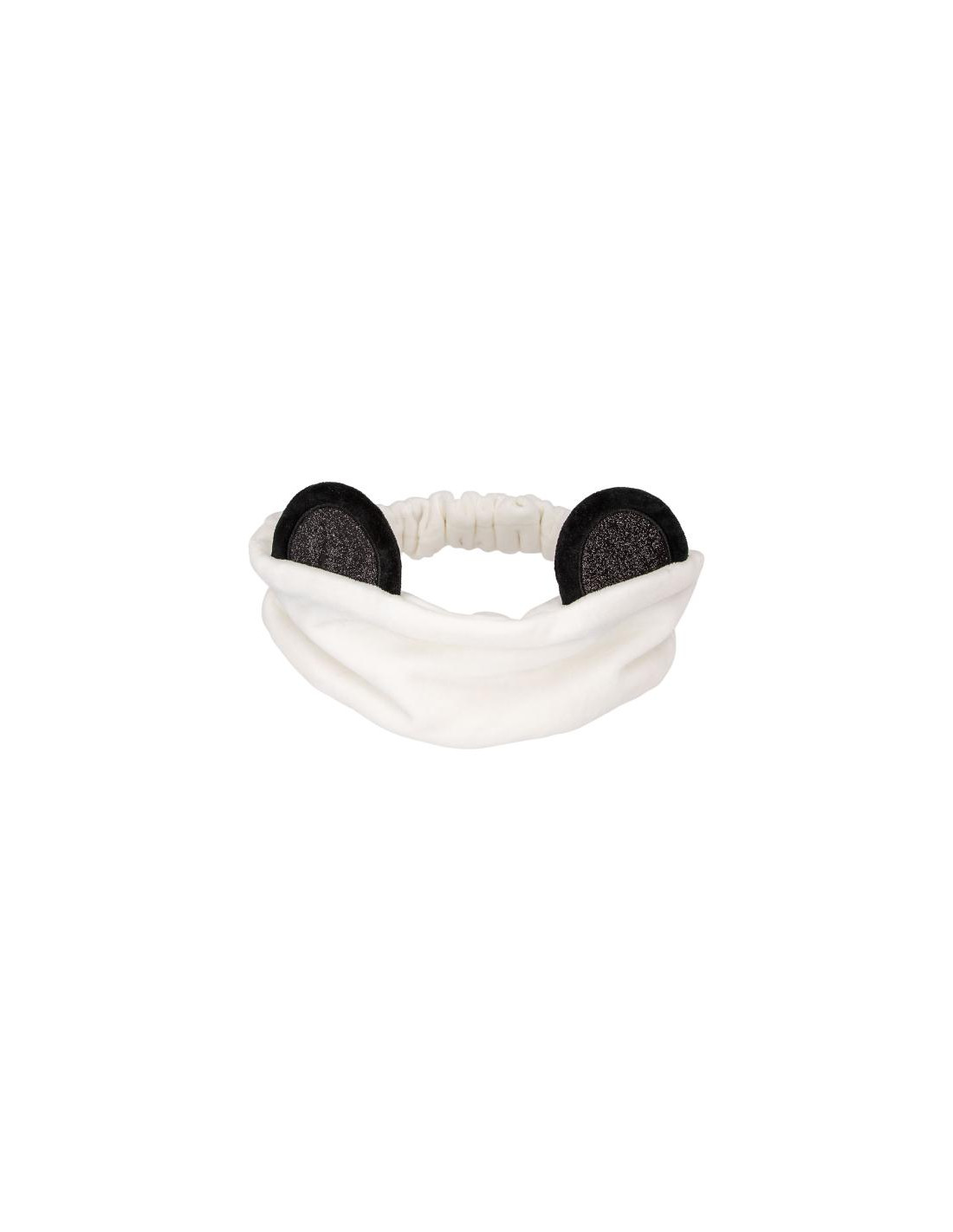 La goma para el pelo TOPModel en blanco y negro con orejas de panda sutilmente brillantes mantiene el pelo fuera de la cara y es muy suave.