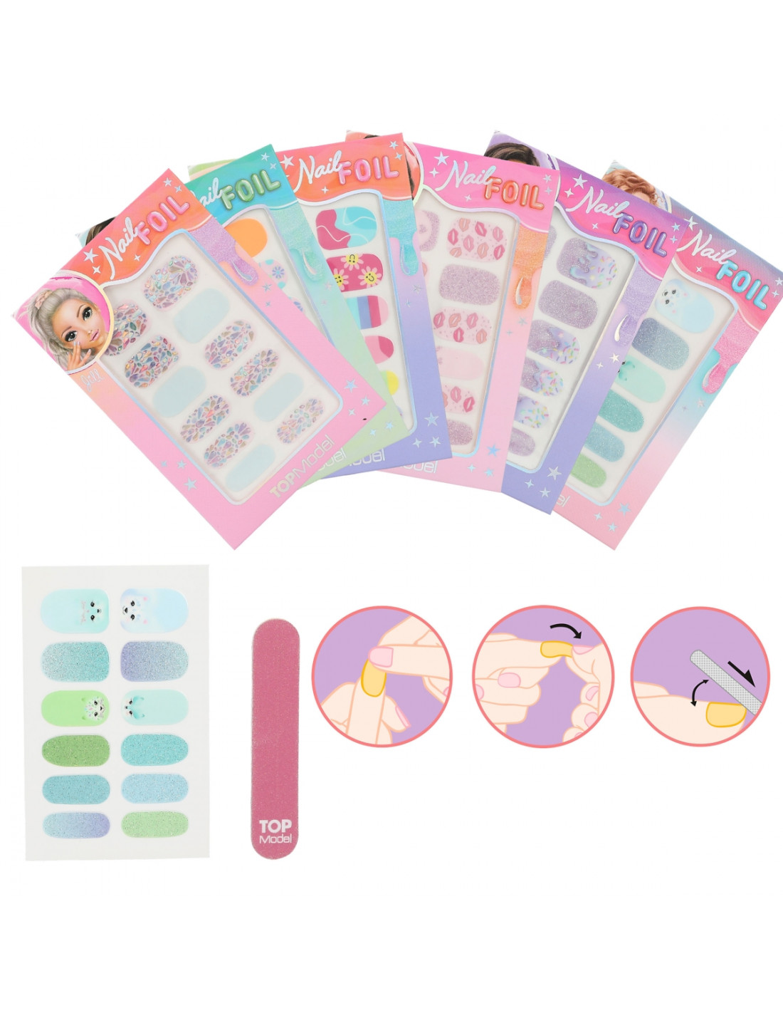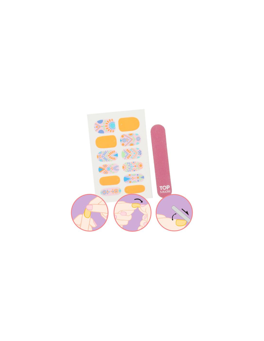 Solo hay que pegar la envoltura sobre la uña y acabar de dar forma con la lima que se incluye en el set.