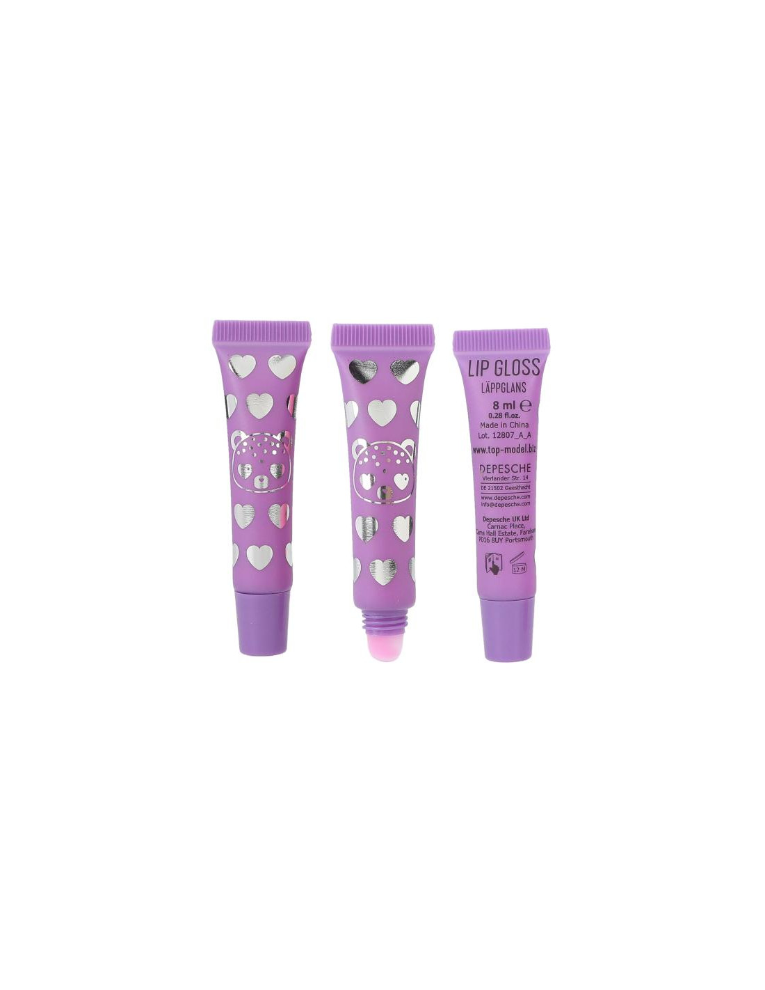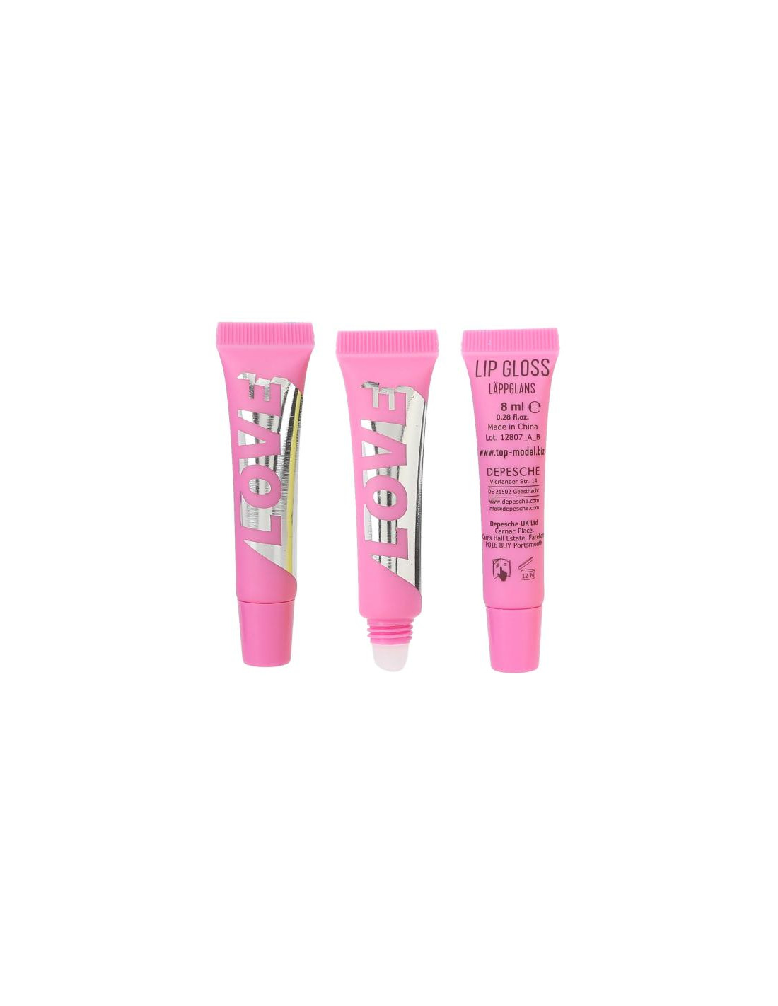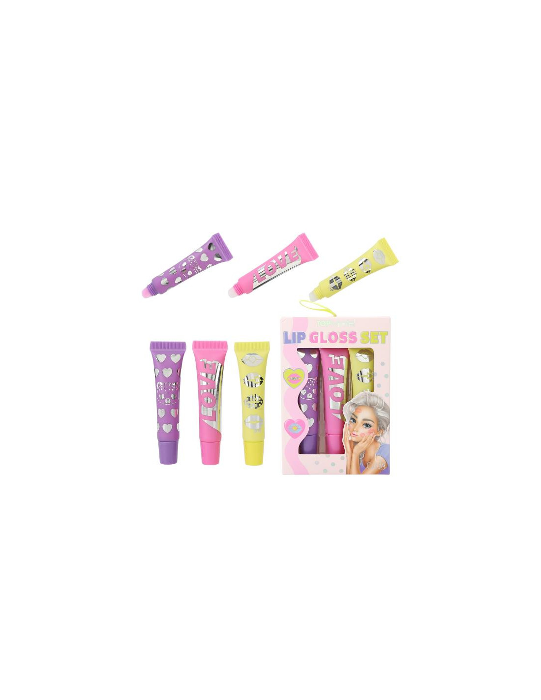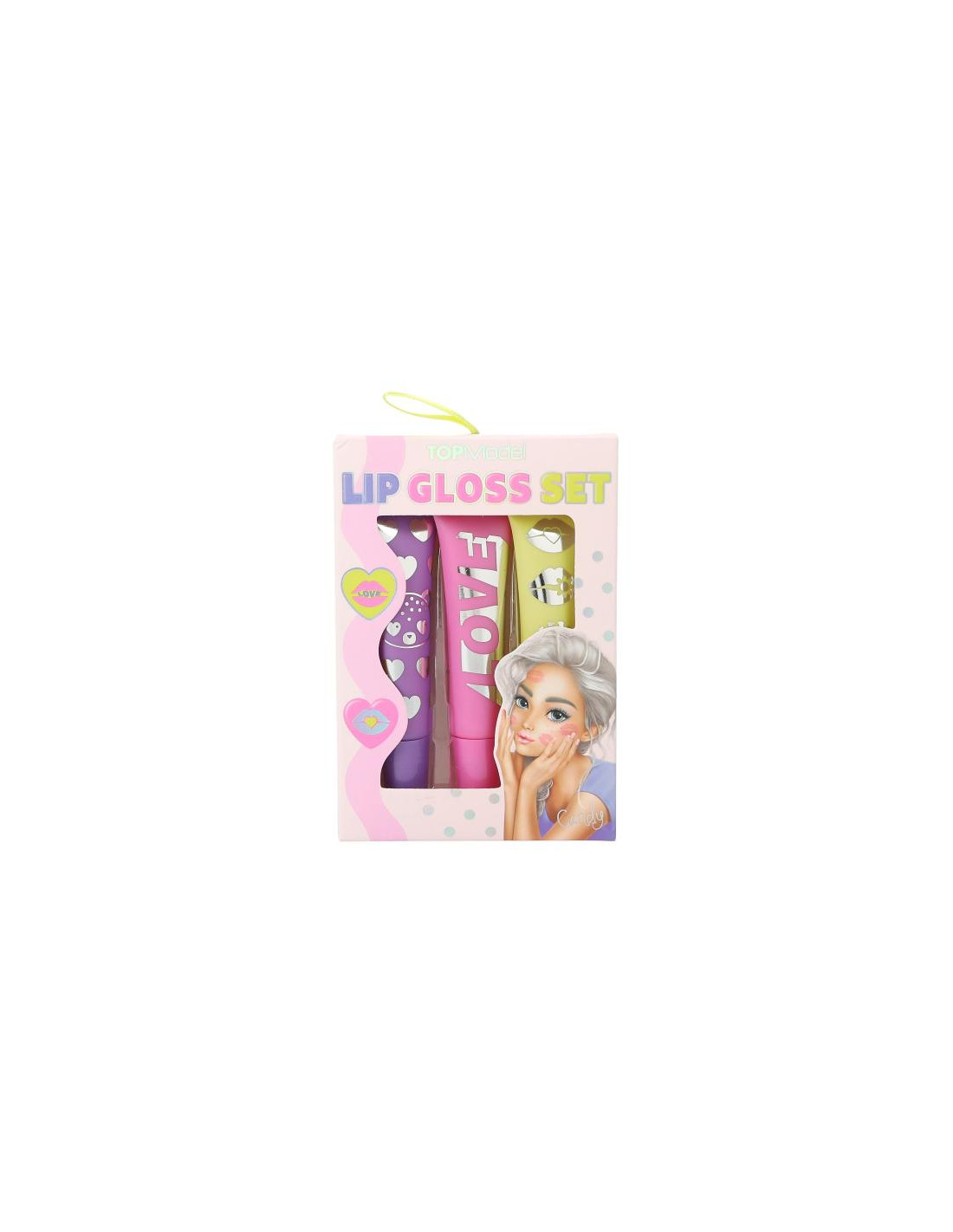el set de brillo de labios de TOPModel ofrece tres tonos diferentes de rosa con diferentes aromas: arándano, fresa y melocotón.