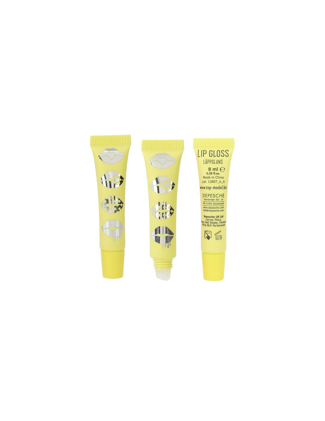 Los prácticos tubos en amarillo, violeta y rosa contienen 8 ml cada uno y están acabados con una lámina plateada brillante.