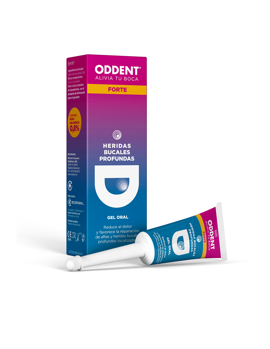 Descubre ODDENT® Gel Forte, la solución más Forte para el alivio de tu boca, con más concentración de ácido hialurónico (0,8%) que otros productos de la gama ODDENT®. Reduce el dolor y el malestar desde las primeras aplicaciones Formulado especialmente para usarlo durante la fase postoperatoria o después de traumatismos, intervenciones quirúrgicas o periodontales Uso simple y eficiente Apto para todos los públicos. No se han descrito contraindicaciones*