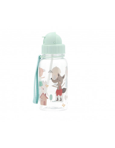 Esta botella tiene una pajita de silicona abatible que sale automáticamente cuándo se abre la tapa y es ideal para llevar al cole. Tiene un asa larga que permite llevarla colgada en la mochila o en el carrito del bebé.