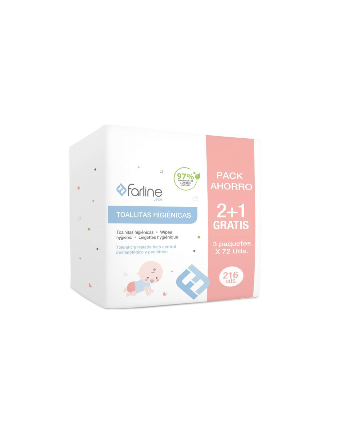 TOALLITAS HIGIENICAS 3 PAQUETES DE 72 UNIDADES.