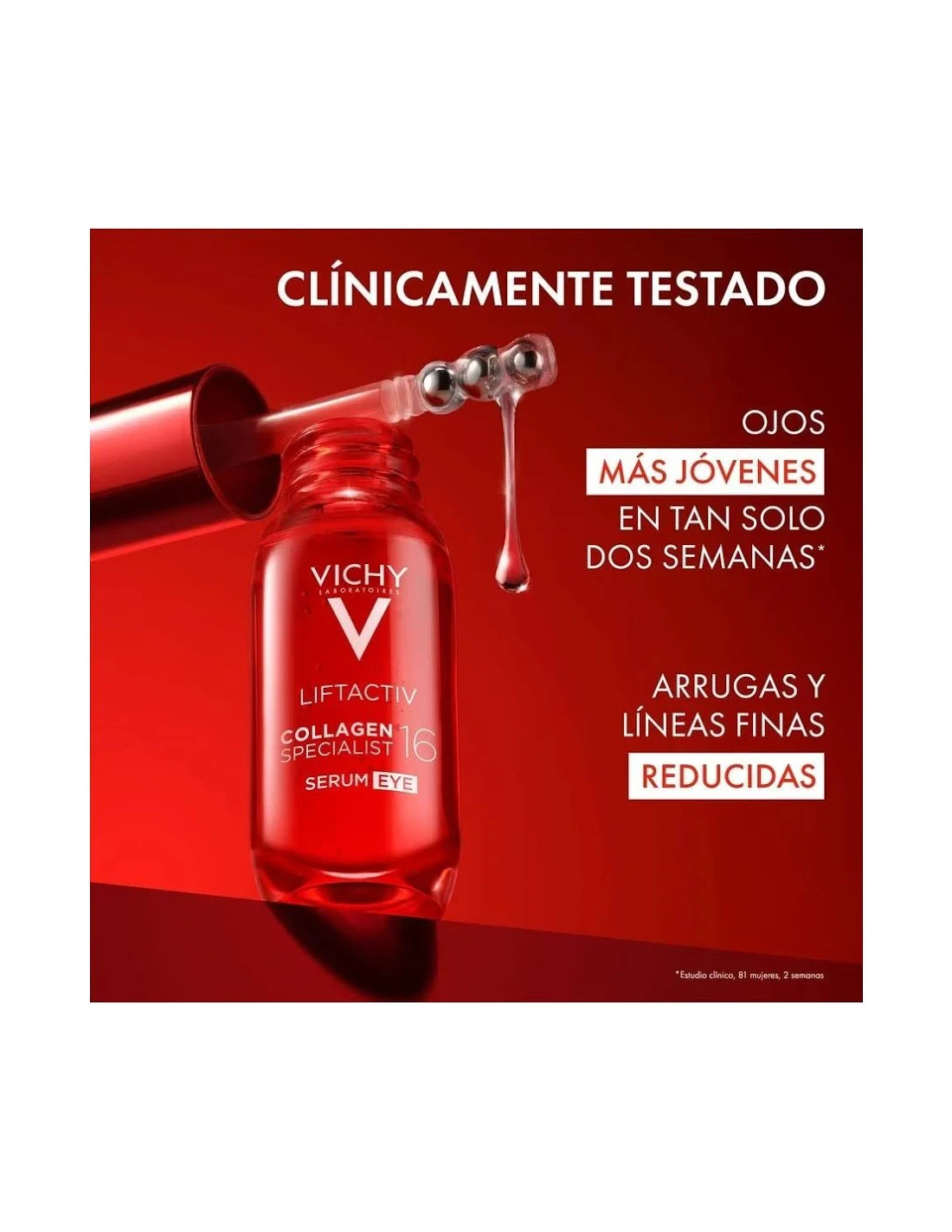 Liftactiv Collagen Specialist 16 Bonding Serum es el primer serum de Vichy con tecnología Co-Bonding para potenciar el colágeno y corregir 16 signos de la edad*.